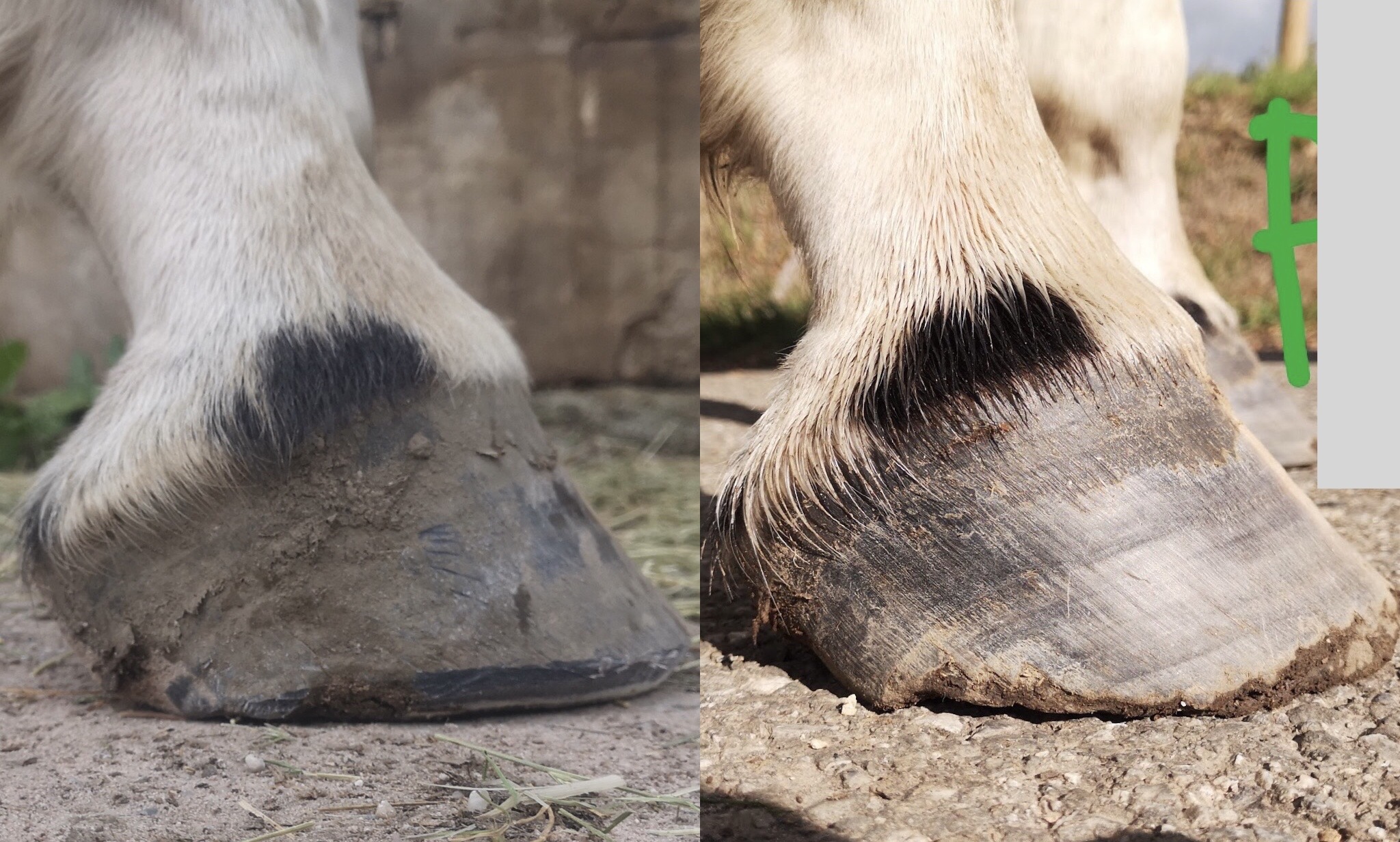 Left: After Right: Before Shows a horse trimmed by an owner after successfully completing this course